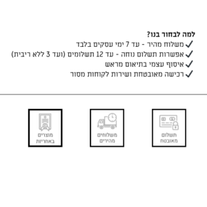 משלוח חינם מעל הזמנה של 150 לכל הארץ!!